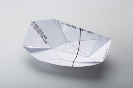 Designed is a floating device that can be rolled up to save space. It consists of a single polypropylene plate that folds into the Float by pulling a rope. This allows the Float to be activated in one easy step. The form is cut out of a 2,5 mm polypropylene plate in a punching process were living hinges are pressed in at the same time. Eyelets are attached to the edges of the plate through which the rope runs. In addition, a paddle consisting of a wooden rod and a folded polypropylene shovel is supplied.